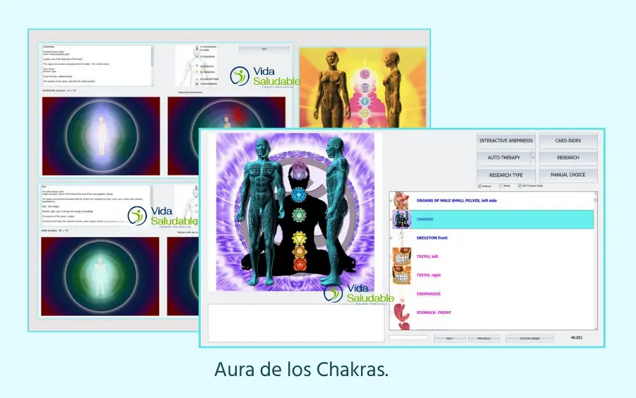Los Chakras es el campo electromagnético que envuelve a todo ser vivo y se manifiesta en el campo físico mediante objetos cargados eléctricamente que se representan como diferentes colores que rodean el cuerpo. Este campo electromagnético puede proporcionar información sobre el estado emocional de una persona, la calidad de la conciencia y determinará el nivel de salud con respecto a un órgano individual y sistemas de órganos.